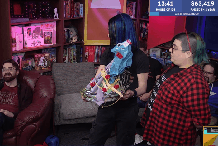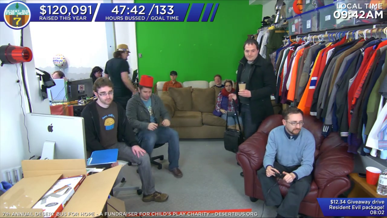 -47:36 -- Technical Desert Bus game audio can be heard in the room --